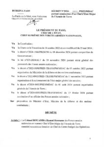 Actualités Le Colonel ROUAMBA Hamed Hermann est nommé Chef d’Etat-Major de l’Armée de TERRE 20 décembre 2024 Aucun commentaire
