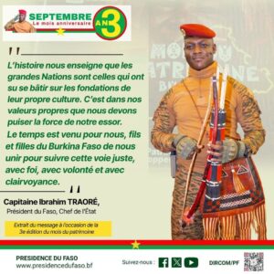 Actualités SEPTEMBRE, LE MOIS ANNIVERSAIRE : Une citation du Capitaine Ibrahim TRAORÉ 16 septembre 2025 Aucun commentaire