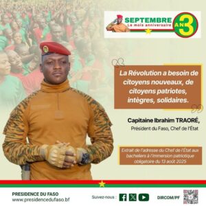 Actualités SEPTEMBRE, LE MOIS ANNIVERSAIRE : Une citation du Capitaine Ibrahim TRAORÉ 29 septembre 2025 Aucun commentaire