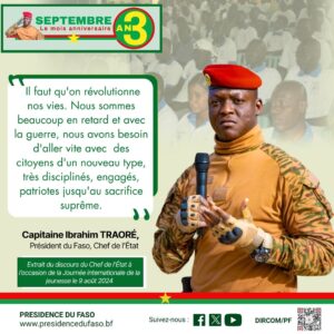 Actualités SEPTEMBRE, LE MOIS ANNIVERSAIRE : Une citation du Capitaine Ibrahim TRAORÉ, 2 octobre 2025 Aucun commentaire