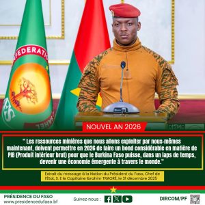 Actualités Nouvel an 2026 : extrait du message à la Nation du Président du Faso, Chef de l’État, S.E le Capitaine Ibrahim TRAORÉ 16 janvier 2026 Aucun commentaire