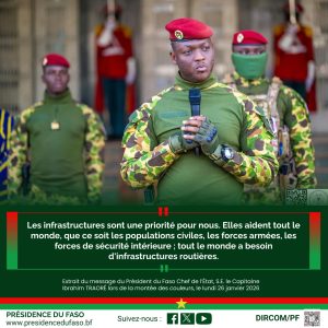 Actualités Extrait du message du Président du Faso Chef de l’État, S.E. le Capitaine Ibrahim TRAORÉ lors de la montée des couleurs, le lundi 26 janvier 2026 13 février 2026 Aucun commentaire