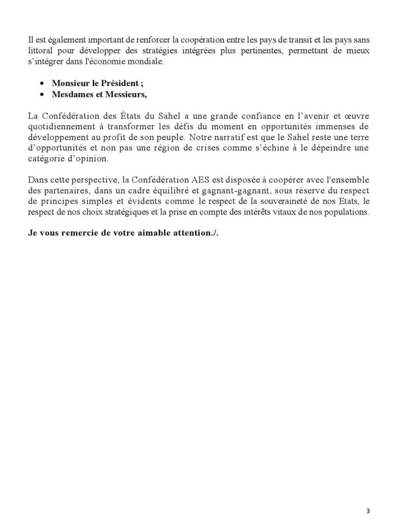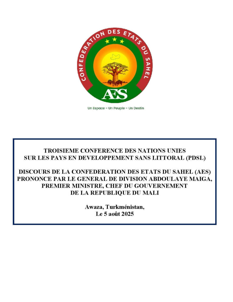 Accueil / A.E.S / AES : Discours du Premier ministre malien à la 3e Conférence des Pays en développement sans littoral (Turkménistan)