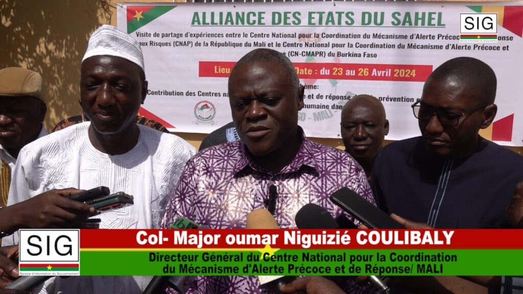 Le Secrétaire général du centre national d’alerte précoce et de réponse du Mali, colonel Major Oumar Niguizié COULIBALY a également relevé l’importance d’un partage d’expériences avec le Burkina Faso au regard du contexte de crise sécuritaire. « Il est important pour nous d’échanger non seulement sur les bonnes pratiques, mais aussi échanger sur comment jouer pleinement notre rôle en matière de prévention et de lutte contre tout ce qui est menace à la sécurité humaine », a-t-il souligné.