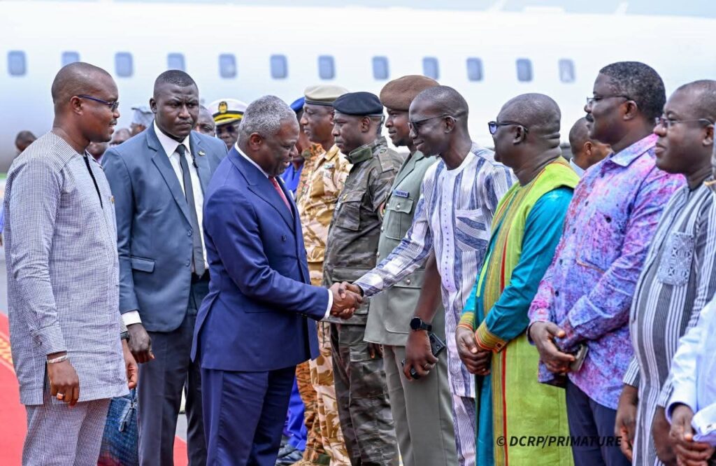 À sa descente d’avion à l’aéroport international de Ouagadougou, il a été accueilli par son homologue burkinabè, Son excellence Monsieur Rimtalba Jean Emmanuel Ouédraogo, entouré pour l’occasion de plusieurs membres du Gouvernement et de présidents d’institutions.