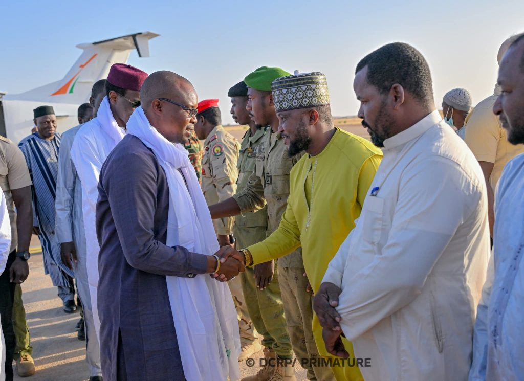 Avant d’arriver à Iferouane, la délégation a marqué une escale à Agadez où le Premier ministre a reçu un accueil chaleureux de la communauté burkinabè et des autorités régionales. Une soixantaine de Burkinabè résidant dans la ville s’est mobilisée pour saluer leur Premier ministre, un moment qu’ils ont qualifié d’historique, affirmant que c’est la première fois qu’ils croisent un Chef de Gouvernement burkinabè à Agadez.