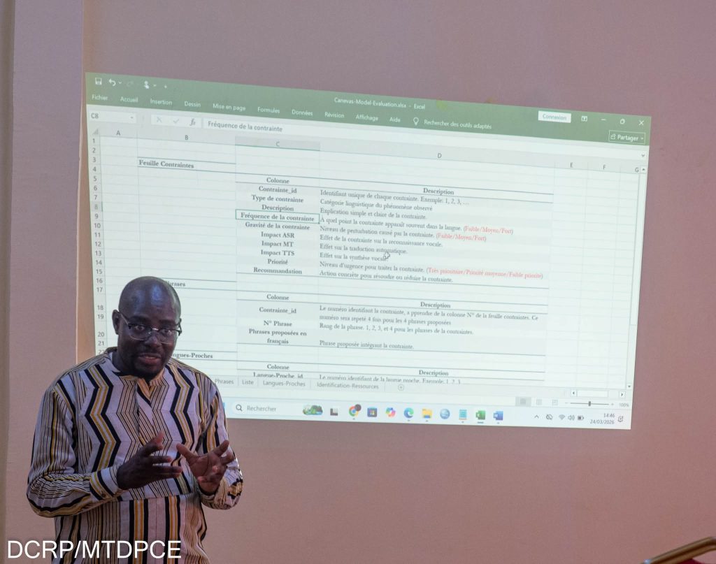 Depuis ce mardi 24 mars 2026, le dรฉpartement de Dr Aminata ZERBO/SABANE, ร travers le Secrรฉtariat permanent ร lโInnovation et ร la Veille sur les technologies รฉmergentes du Numรฉrique (SPIVTEN), organise un atelier dรฉdiรฉ ร la formalisation linguistique et ร la constitution dโun corpus pour les modรจles dโIntelligence Artificielle (IA) en langues nationales. Quatre langues sont concernรฉes : le Moore, le Dioula, le Fulfuldรฉ et le Gulmancema.
