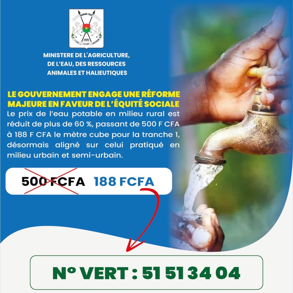 Cette dรฉcision sโinscrit pleinement dans la vision du camarade Prรฉsident du Faso, Son Excellence le Capitaine Ibrahim TRAORE. Elle vise ร garantir un accรจs รฉquitable aux services essentiels pour toutes les populations, sans distinction, ร rรฉduire les inรฉgalitรฉs sociales et ร assurer une meilleure qualitรฉ de lโeau distribuรฉe sur lโensemble du territoire.