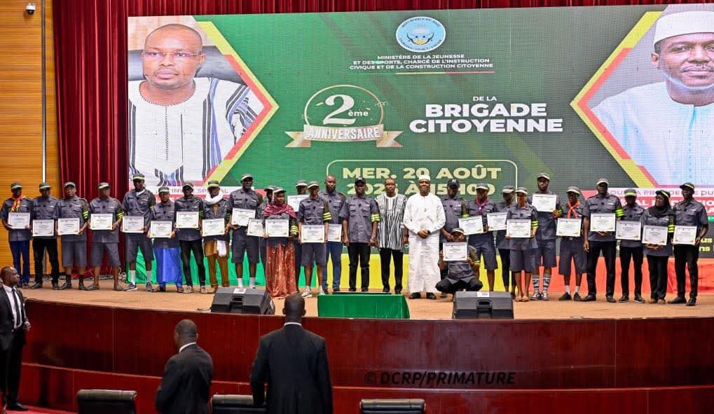 Le Premier ministre du Burkina Faso, Rimtalba Jean Emmanuel Ouรฉdraogo, a pris part, ce mercredi 20 aoรปt 2025, ร  la cรฉlรฉbration du deuxiรจme anniversaire de la Brigade citoyenne du Mali. La cรฉrรฉmonie, organisรฉe au Centre international de Confรฉrences de Bamako, a rรฉuni de nombreux officiels, des leaders communautaires et surtout des centaines de jeunes engagรฉs dans cette organisation.