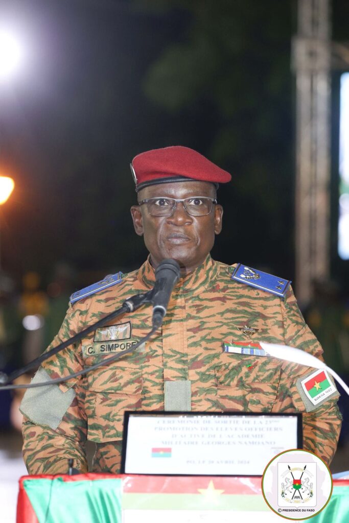 (Pô, 20 avril 2024). Le Président de la Transition, Chef de l’Etat, Chef suprême des Forces armées nationales a présidé, ce samedi après-midi, la cérémonie marquant la fin de formation des élèves-officiers d’active, à l’Académie Militaire #Georges_Namoano.
