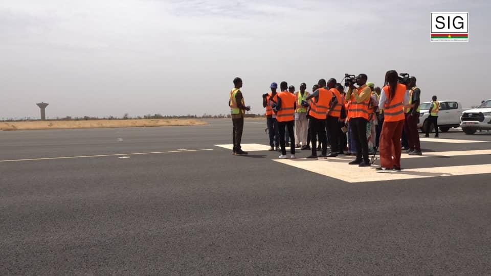 La Société des aéroports du Faso (SAFA) a organisé, ce samedi 28 mars 2026, une visite guidée à l’intention des journalistes sur le site de l’Aéroport international de Ouagadougou-Donsin. Cette initiative vise à faire le point des réalisations, à exposer les défis techniques et à décliner les perspectives de relance de ce projet stratégique.Dans une dynamique de transparence et de redevabilité, la SAFA a permis aux professionnels des médias de constater de visu la situation d’exécution de plusieurs infrastructures majeures. Parmi les réalisations déjà achevées figurent notamment la piste d’atterrissage, les parkings avions, le parking de l’aérogare passager, les bâtiments administratifs, la clôture du périmètre aéroportuaire, le réseau d’adduction d’eau potable, ainsi que certaines voies internes de circulation à l’intérieur de la plateforme. Ces réalisations témoignent des efforts déjà consentis dans la mise en œuvre de ce projet d’envergure nationale.Toutefois, la visite a également mis en lumière des insuffisances techniques et des écarts dans la conception initiale de certaines infrastructures. Face à cette situation, le Directeur général de la SAFA, Malegdibkièta Saturnin Théophile BIKYENGA, a indiqué que ses équipes travaillent en synergie avec des experts pour identifier les défaillances structurelles et proposer des mesures correctives adaptées. « Nous allons les évaluer ensemble le reste des infrastructures avec les experts techniques pour rendre compte aux autorités et proposer une feuille de route pour la reprise, dans les meilleurs délais, des travaux », a-t-il indiqué.Au-delà des aspects techniques, la SAFA inscrit le Projet de l’Aéroport international de Ouagadougou-Donsin dans une vision stratégique portée par les plus hautes autorités du pays. Selon son Directeur général, l’aéroport est conçu comme une infrastructure de souveraineté, appelée à refléter les ambitions du Burkina Faso. Il s’agira ainsi de doter le pays d’un aéroport à la hauteur des exigences contemporaines, avec une architecture et des services alignés sur la vision d’un Burkina Faso nouveau. L’ambition affichée est de conduire à terme ce projet structurant afin de faire de cet aéroport un véritable levier de développement économique et d’attractivité pour le Burkina Faso.