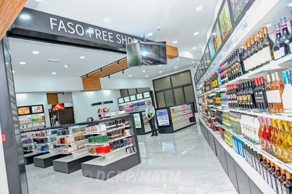 La salle d’embarquement R+1 abrite également une boutique moderne dénommée « Faso Free Shop », proposant à la fois des produits de luxe, des biens de consommation courante et des objets d’art mettant en valeur la richesse culturelle et historique du Burkina Faso.