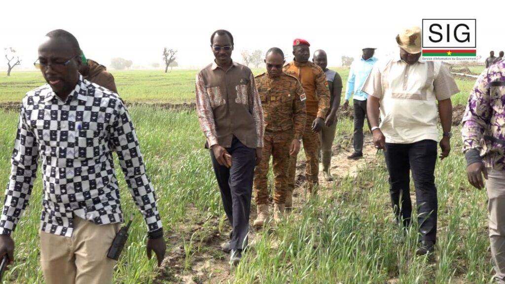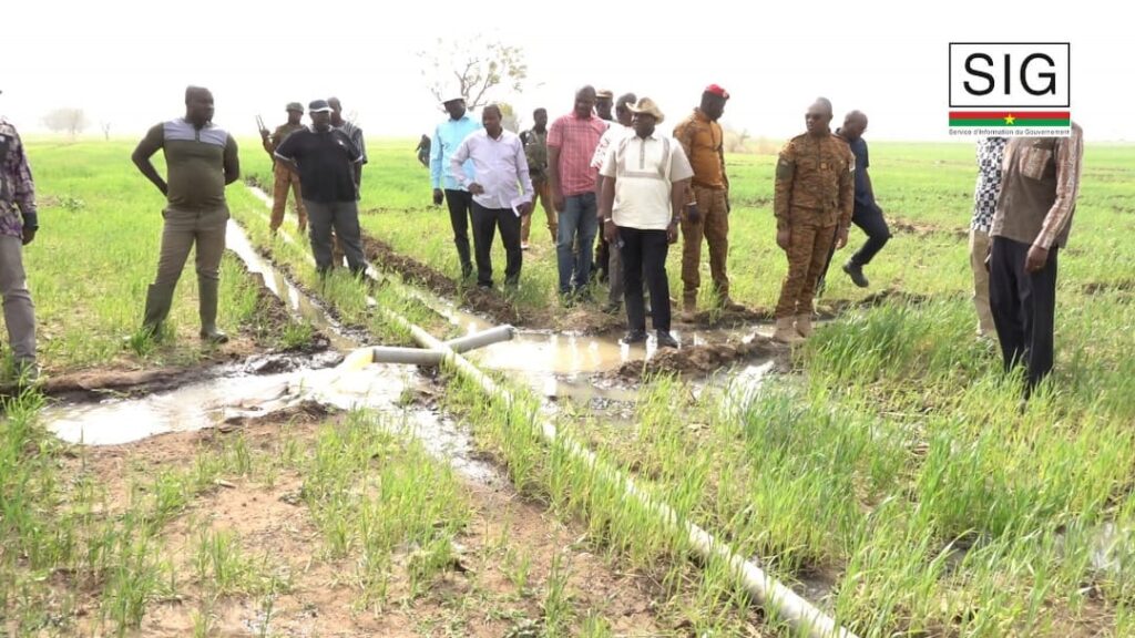 Le ministre chargé de l’Agriculture, le Commandant Ismaël SOMBIE et son équipe ont parcouru les 3000 ha de superficies aménagées de Bagrépôle consacrées à la production du blé et d’autres cultures. Ils ont également fait l’état des lieux des ouvrages d’irrigation du site.