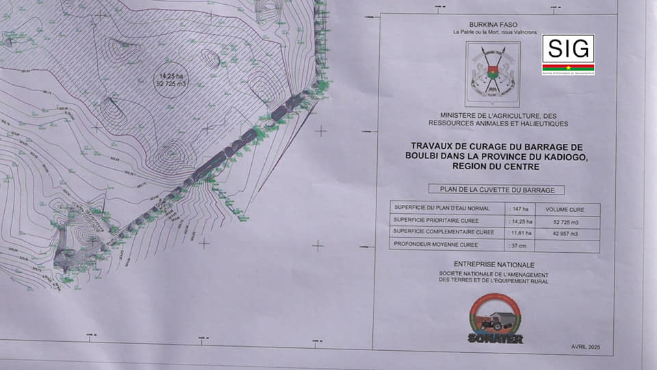 Selon Jean Calixte NIKIEMA, Directeur des Infrastructures et des aménagements agricoles de la société nationale de l’aménagement des terres et de l’équipement rural (SONATER), les travaux de curage concernent tout le lit du barrage à savoir une superficie de 25 hectares ce qui permettra de mobiliser 100 000 m3 d’eau. Il a en outre affirmé que les résultats obtenus à l’issue des sondages géotechniques réalisés confirment que l’ensablement du barrage de Boulbi est compris entre 0,5 et 2 mètres par endroit.