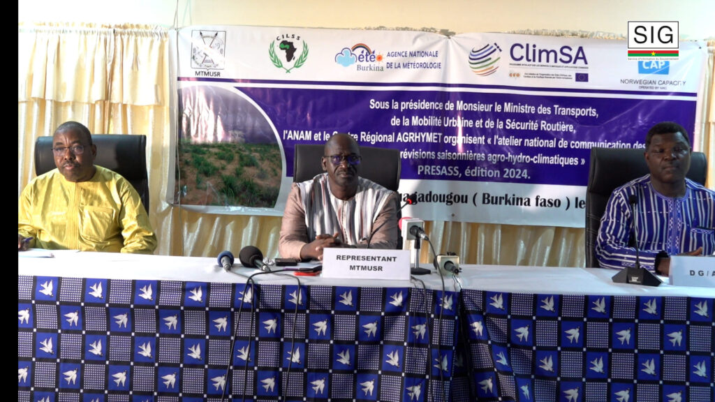 Le ministre des Transports, de la mobilité urbaine et de la sécurité routière, Anûuyirtole Roland SOMDA a dans son discours lu par le Directeur de cabinet Joseph SAWADOGO, souligné que la prévision saisonnière climatique constitue une des meilleures stratégies d’adaptation à la variabilité et aux changements climatiques dans la sous-région. « En effet, l’élaboration et la diffusion des informations caractérisant la saison des pluies 2024 permettent à nos laborieux paysans et aux autres utilisateurs finaux de faire des choix optimaux pour réussir la saison », a-t-il relevé.