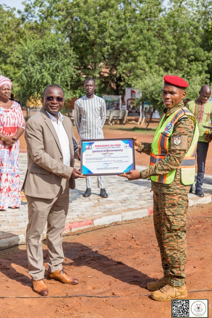 Le parrain de cette édition, le Colonel Ismaël Kiswendsida DIAOUARI, félicite ses filleuls pour la prouesse réalisée pendant ces dix jours avec une bonne assimilation des enseignements reçus.