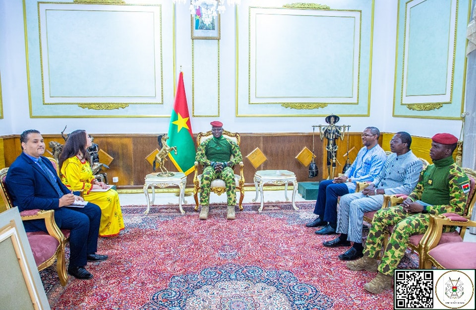 (Ouagadougou, 12 décembre 2024). Le Président du Faso, Chef de l’Etat, le Capitaine Ibrahim TRAORE a accordé, ce jeudi en fin de matinée, une audience à l’ambassadeur de la République algérienne démocratique et populaire en fin de mission, Selma Bakhta MANSOURI.