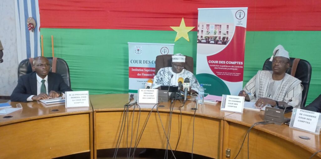 Le Premier Président de la Cour des Comptes, accompagné de ses collaborateurs, était face à la presse le jeudi 29 février 2024 à Ouagadougou. Objectif, présenter le contenu du rapport public annuel 2022 de la Cour des comptes.