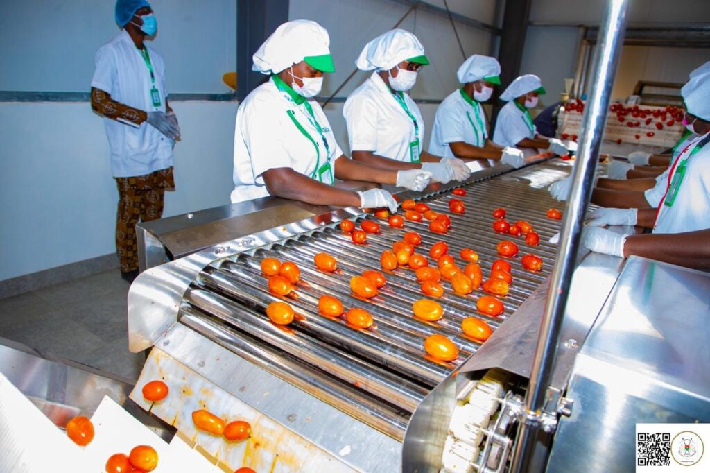 L’usine de transformation de tomates de Bobo-Dioulasso est maintenant une réalité grâce à l’actionnariat populaire. Située dans le quartier de Dogona, cette usine est bâtie sur une superficie de 5 ha et comprend un bâtiment administratif R+1 extensible, une cantine, une infirmerie moderne, un bâtiment industriel, deux magasins de stockage, un pont-bascule et un atelier de maintenance. Ce complexe est complété par des infrastructures routières adaptées et une adduction en eau et électricité anticipée. L’usine de tomates a une capacité de transformation de six tonnes de tomates fraîches par heure pour 800 kg de produits finis par heure.