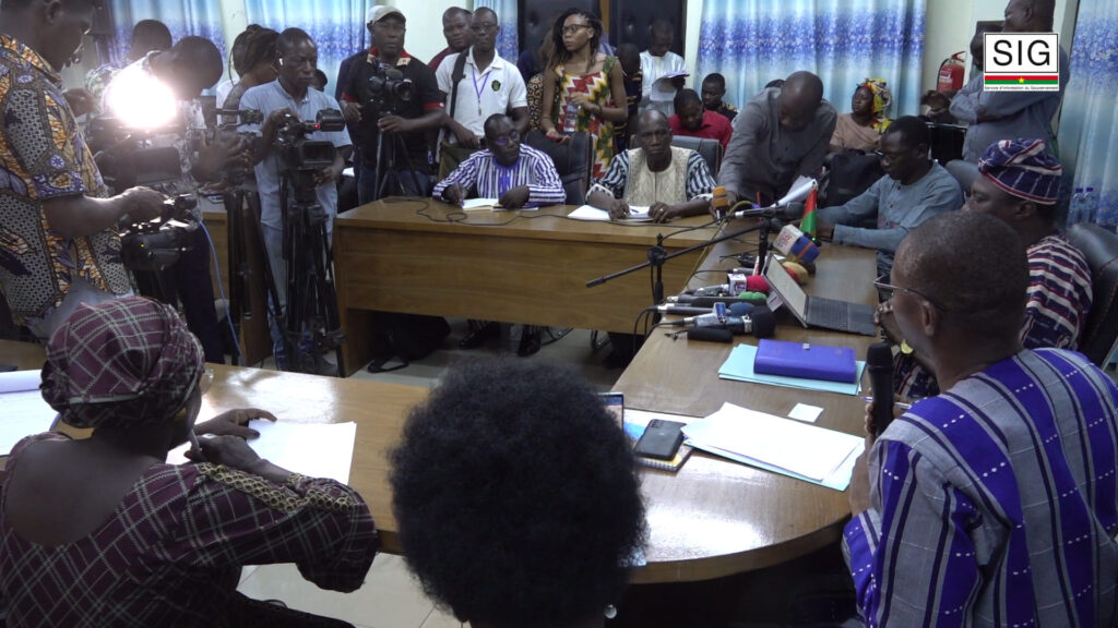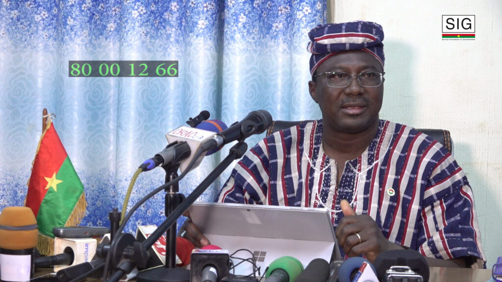 Le ministre de l’Education nationale, de l’alphabétisation et de la promotion des langues nationales monsieur Jacques Sosthène DINGARA a animé une conférence de presse le vendredi 31 mai 2024 á Ouagadougou au cours de laquelle il a fait le point de l’organisation des examens scolaires de la session 2024 et les innovations pour améliorer la gestion desdits examens.