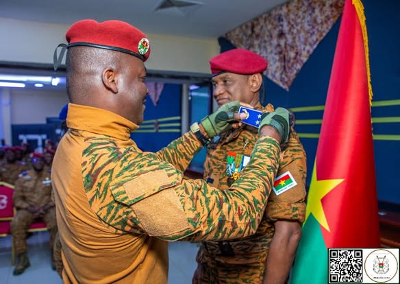 (Ouagadougou, 20 décembre 2024). Le Président du Faso, Chef de l’État, Chef suprême des Forces armées nationales, le Capitaine Ibrahim TRAORE a présidé ce vendredi matin, la cérémonie de remise officielle des attributs de Général de Brigade au Colonel Moussa DIALLO, nouveau Chef d’État-major général des armées.