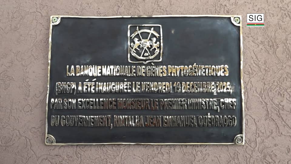 Le ministre d’État, ministre de l’Agriculture, des Ressources animales et halieutiques, le Commandant Ismaël SOMBIE, représentant le Premier ministre Rimtalba Jean Emmanuel Ouédraogo, a inauguré, le vendredi 19 décembre 2025 à Ouagadougou, la Banque nationale des gènes phytogénétiques (BNGP). La cérémonie d’inauguration s’est tenue à l’Université Thomas Sankara, en présence de plusieurs membres du gouvernement, dont le ministre chargé de l’Enseignement supérieur le Pr Adjima THIOMBIANO, ainsi que le ministre chargé de l’Enseignement de base, Jacques Sosthène DINGARA.La Banque nationale des gènes phytogénétiques est composée de chambres de conservation, d’une chambre de traitement des semences, d’une chambre de conditionnement, d’une chambre de fumigation, d’une aire de séchage et de battage, d’un hall de traitement des récoltes, de serres, de parcelles de régénération et de collection vivante, ainsi que d’un local administratif. Cette infrastructure est destinée à assurer la conservation de l’ensemble des variétés végétales du territoire burkinabè.Selon le ministre chargé de la Recherche et de l’innovation, la Banque nationale des gènes phytogénétiques permettra de préserver aussi bien les semences traditionnelles que celles issues de croisements variétaux. « La Banque de gènes permet de conserver toutes ces semences en un seul endroit afin de garantir des souches pures. À partir de ces souches, nous pouvons produire et distribuer des semences de qualité aux producteurs, dans l’objectif d’améliorer les rendements agricoles », a-t-il expliqué. Il a également souligné que cette infrastructure constitue une première en Afrique de l’Ouest, tant par le respect des normes internationales que par sa capacité de conservation.Construite selon les standards et normes internationales, la Banque nationale des gènes phytogénétiques se distingue par son caractère polyvalent. Contrairement à certaines banques spécialisées dans des cultures spécifiques comme le riz ou le cacao, la banque burkinabè prend en charge l’ensemble de la diversité des cultures, avec un gabarit et des capacités pouvant soutenir non seulement le Burkina Faso, mais aussi d’autres pays de la sous-région.Dotée d’une chambre froide de caractéristiques internationales, intégrant des dispositifs de génération de froid insérés dans les murs et dans le sol, la banque des gènes est conçue pour préserver les semences sur une durée pouvant atteindre 40 ans, dans des conditions climatiques strictement contrôlées. Selon le Secrétaire permanent de la Commission nationale de gestion des ressources phytogénétiques (SP-CONAGREP), Dr Soungalo SOULAMA, la chambre de conservation à long terme peut accueillir jusqu’à 30 000 accessions de semences, avec des perspectives d’extension à l’avenir.Au-delà de son rôle scientifique, la Banque nationale des gènes phytogénétiques constitue aussi un instrument de souveraineté nationale.Le Pr THIOMBIANO a rappelé que de nombreux enseignants-chercheurs burkinabè ont identifié, au fil des années, des variétés et des gènes d’un grand intérêt agronomique, souvent conservés hors du pays faute d’infrastructures adaptées. « Où serait notre souveraineté si nous développons des variétés sans être capables de les conserver nous-mêmes ? », s’est-il interrogé.