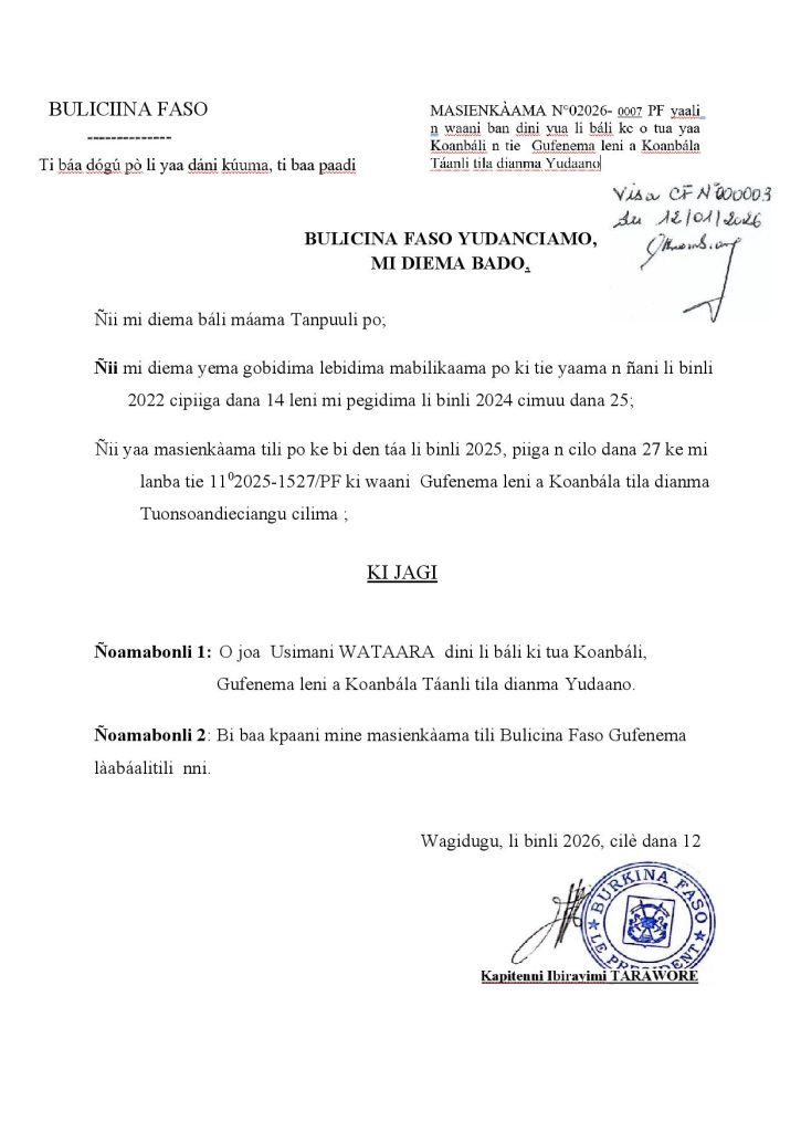 GULIMANCEMA : Décret portant nomination du Secrétaire général du Gouvernement