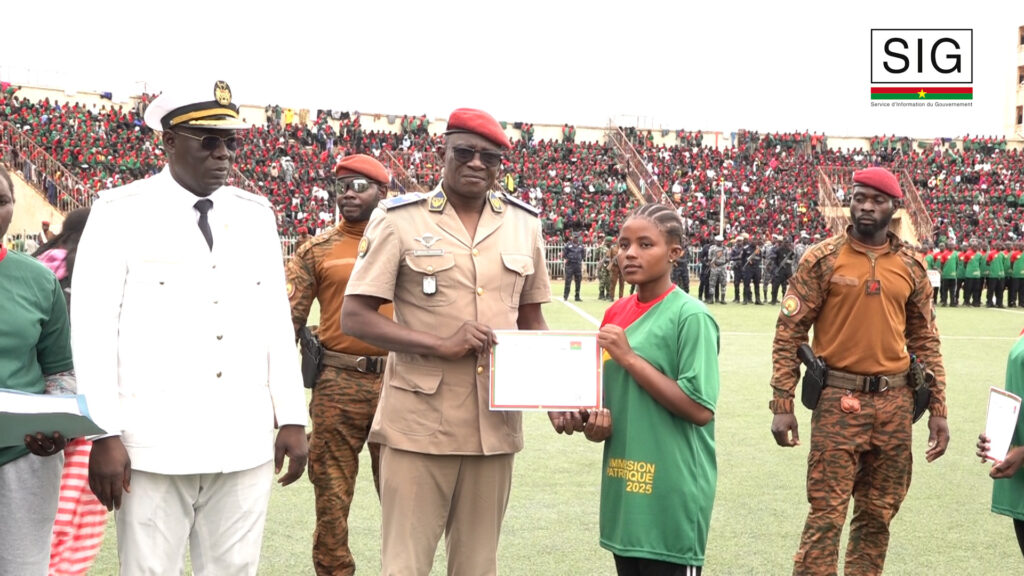 Le ministre d’Etat, ministre de la Défense et des anciens combattants, le Général de Brigade Célestin SIMPORE et celui de l’Enseignement supérieur, de la recherche et de l’innovation Adjima THIOMBIANO ont présidé le 09 septembre 2025 à Ouagadougou la cérémonie officielle de sortie de la première promotion des bacheliers en Immersion patriotique obligatoire (IPO) de la région du Kadiogo. Cette cérémonie de sortie a également connu la présence du Gouverneur de la région du Kadiogo, des autorités administratives, civiles, militaires, religieuses et coutumières.