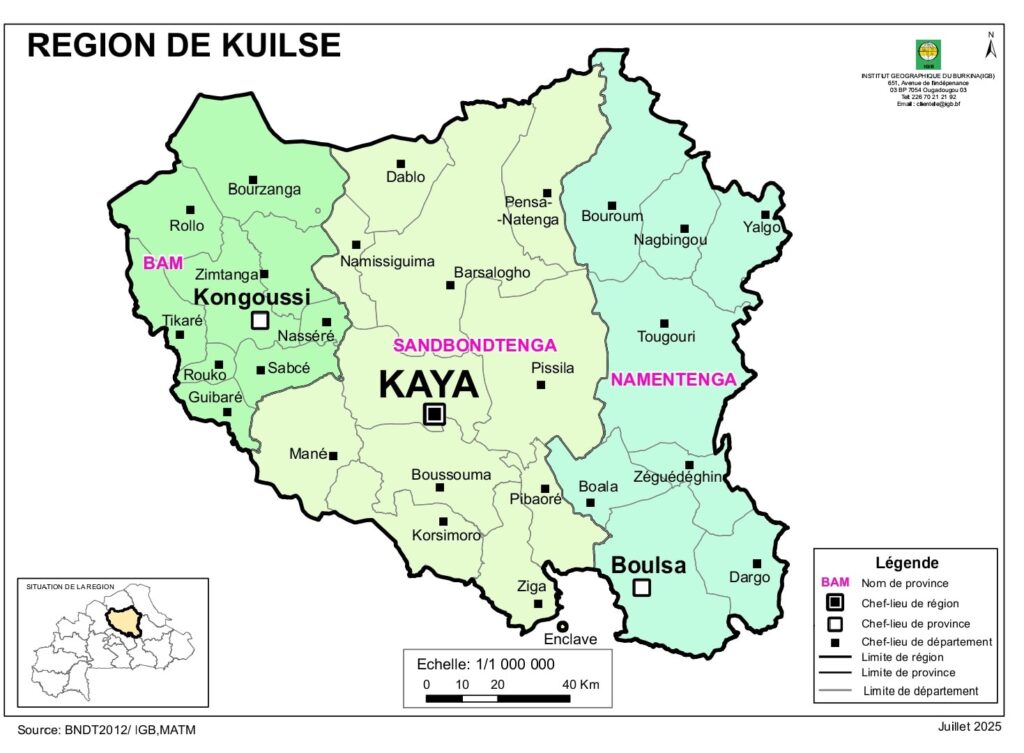 -Sandbondtenga (Kaya): Barsalogho, Boussouma, Dablo, Kaya, Korsimoro, Mané, Namissiguima, Pensa, Pibaoré, Pissila et Ziga