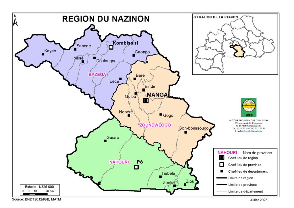 -Zoundwéogo (Manga): Béré, Bindé, Gogo, Gomboussougou, Guiba, Manga et Nobéré