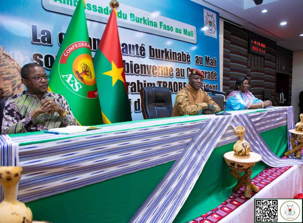 (Bamako, 24 décembre 2025). Après avoir pris les rênes de la Confédération AES, le Président du Faso, Chef de l’État, Son Excellence le Capitaine Ibrahim TRAORÉ, a rencontré ce 23 décembre à Bamako, la communauté burkinabè vivant au Mali, en Guinée et en Mauritanie.À ce rendez-vous, le Capitaine Ibrahim TRAORÉ a fait le point de la situation de la reconquête du territoire. Avec des victoires décisives dans des localités jadis sanctuaires de terroristes, la reconquête territoriale s’accélère.