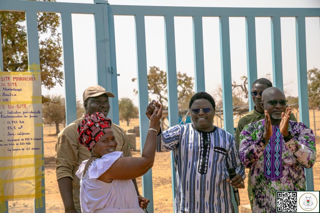 (Boulsa, 10 mars 2026). Au lendemain de la commémoration de la Journée internationale des droits des Femmes, le Ministre Conseiller spécial du Président du Faso, M. Samuel KALKOUMDO accompagné du chargé de mission M. Dominique CONOMBO, a remis ce 09 mars, au nom du Président du Faso, les clés d’un périmètre maraîcher aménagé à la Société coopérative Wendpanga de Boulsa.