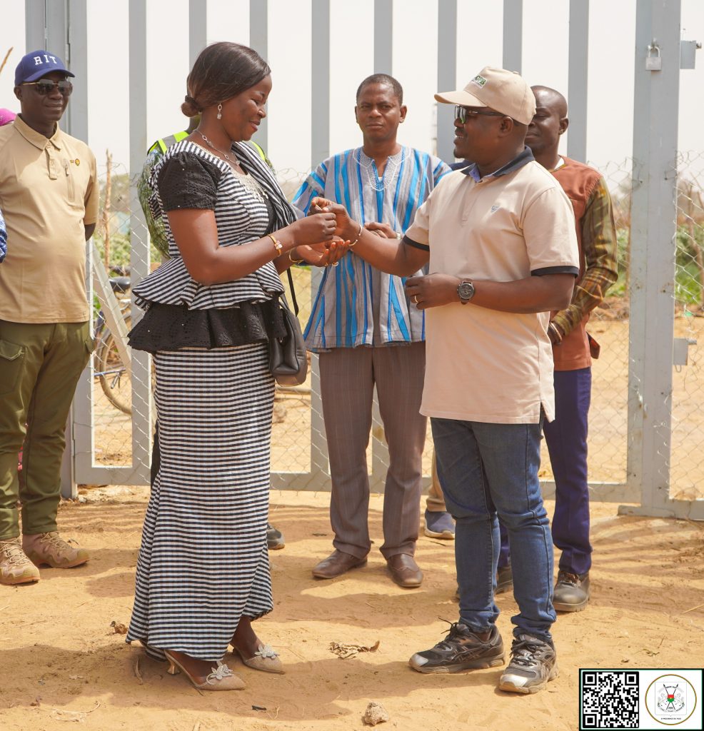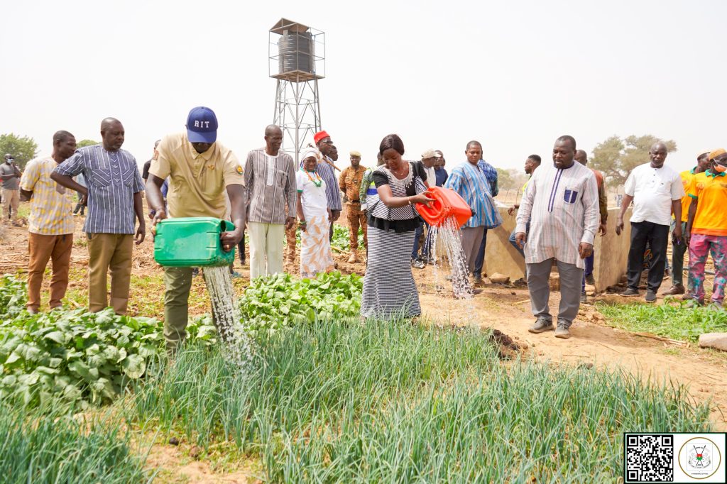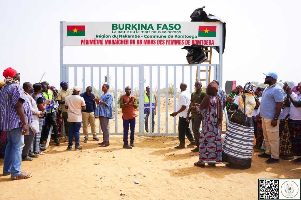 (Tenkodogo, 5 mars 2026). Le Ministre Secrétaire général de la Présidence du Faso, Dr Zakaria SORÉ, au nom du Président du Faso, Chef de l’État, Son Excellence le Capitaine Ibrahim TRAORÉ, a procédé ce mardi 3 mars, à la remise d’un périmètre aménagé pour le maraîchage aux femmes de la commune rurale de Komtoèga dans la région du Nakambé.Le site aménagé est entièrement clôturé et doté de 2 polytanks ravitaillés par un circuit intégré de 3 forages munis de système d’énergie solaire. D’une superficie de 8 hectares, le site dispose de 32 bassins offrant une capacité de 41m³/h d’eau en permanence. Dénommé « Périmètre maraîcher du 8-Mars des femmes de Komtoèga », ce site vise à autonomiser les femmes conformément à la vision du Président du Faso, le Capitaine Ibrahim TRAORÉ.« Dans la vision de souveraineté de Son Excellence le Capitaine Ibrahim TRAORÉ, il a décidé qu’on aménage ce site pour permettre non seulement aux femmes de pouvoir travailler, de profiter des retombées de leurs activités, mais aussi que ce site puisse être un levier de développement pour la commune de Komtoèga », a indiqué Dr Zakaria SORÉ. La représentante des bénéficiaires, Mme Habibou ZÈBA, a exprimé sa gratitude au Chef de l’État : « Aujourd’hui, nous ne célébrons pas seulement un site. Nous célébrons une opportunité. Grâce à cet aménagement, nous pourrons développer nos activités maraîchères et générer des revenus pour nos familles ». La seconde phase du projet consiste à doter les productrices en intrants, engrais et matériel agricole, afin de faire d’elles, de véritables actrices du développement endogène et de transformation sociale.