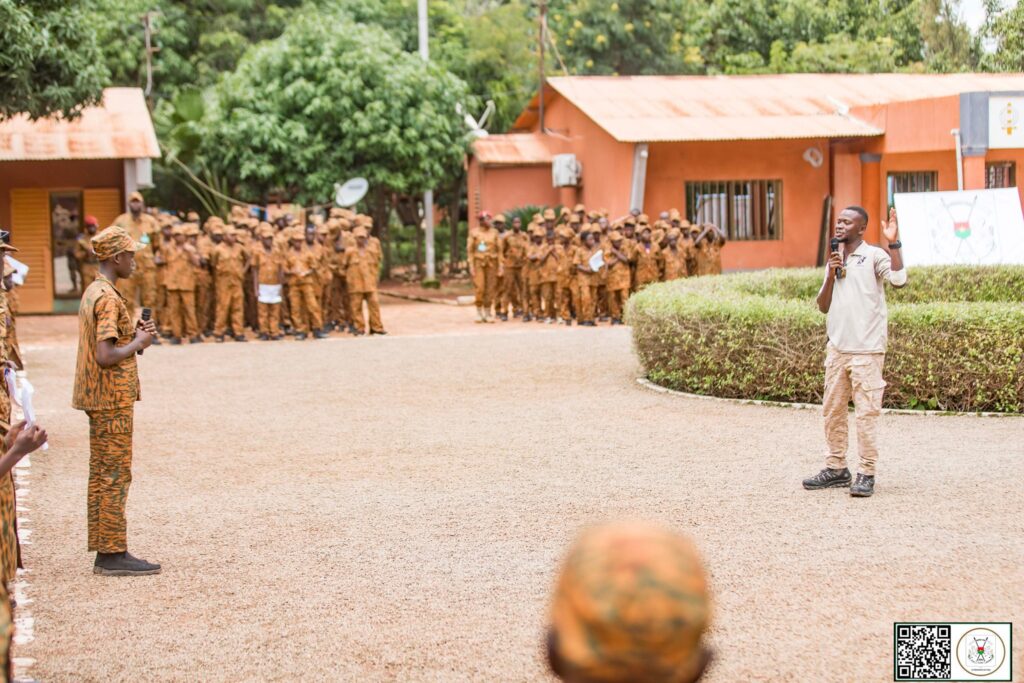 Le Sergent Wendwaogo Daniel KABORÉ, blessé en opération, a partagé avec les campeurs son expérience du terrain et les a exhortés au patriotisme et à la mobilisation pour la défense de la Patrie.