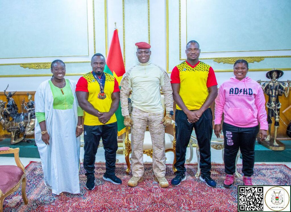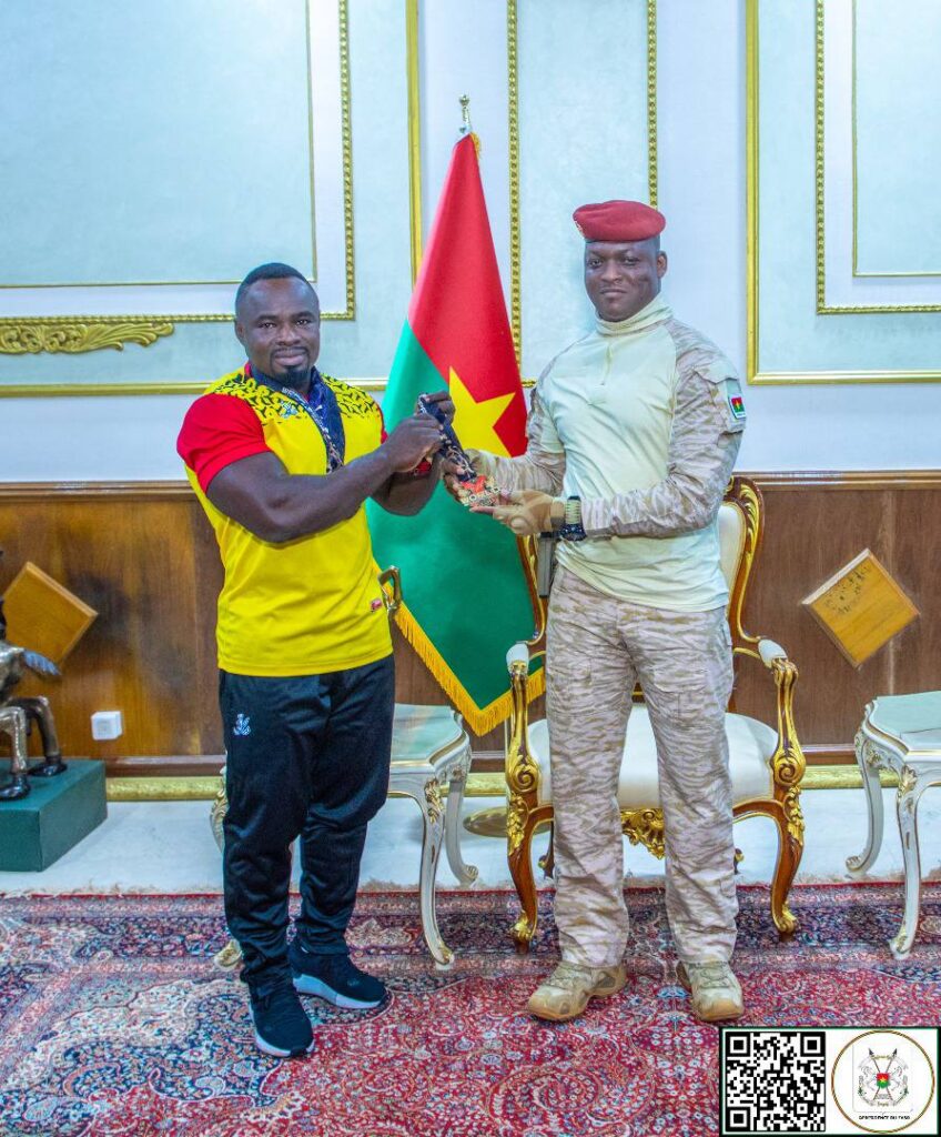 (Ouagadougou, 21 novembre 2024). Le Président du Faso, Chef de l’Etat, le Capitaine Ibrahim TRAORE a accordé, ce jeudi matin, une audience à l’athlète Bady ZAN alias le CATER, champion du monde en power lifting.