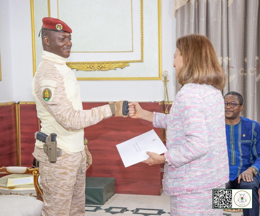 (Ouagadougou, le 5 décembre 2025). Le Président du Faso, Chef de l’État, le Capitaine Ibrahim TRAORÉ a reçu, ce vendredi matin, les lettres de créance de Son Excellence Madame Cristina Maria CERQUEIRA PUCARINHO, Ambassadeur extraordinaire et plénipotentiaire de la République portugaise auprès du Burkina Faso, avec résidence Dakar au Sénégal.