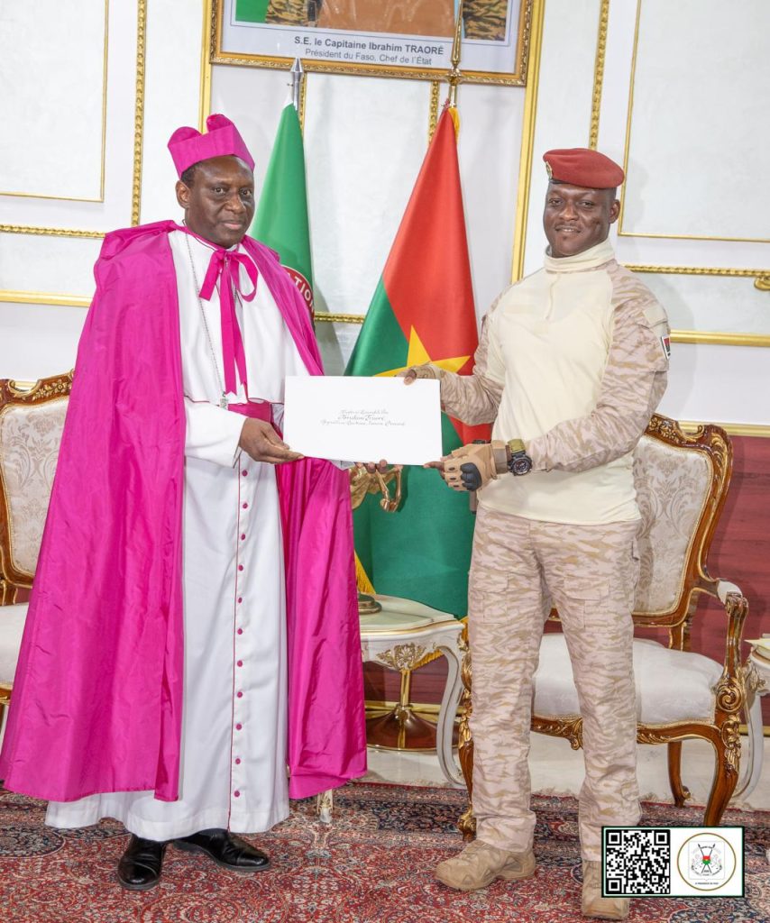 (Ouagadougou, le 5 décembre 2025). Le Président du Faso, Chef de l’État, Son Excellence le Capitaine Ibrahim TRAORÉ a reçu, ce vendredi matin, les lettres de créance de Monseigneur Éric SOVIGUIDI, Nonce apostolique auprès du Burkina Faso, avec résidence à Ouagadougou.