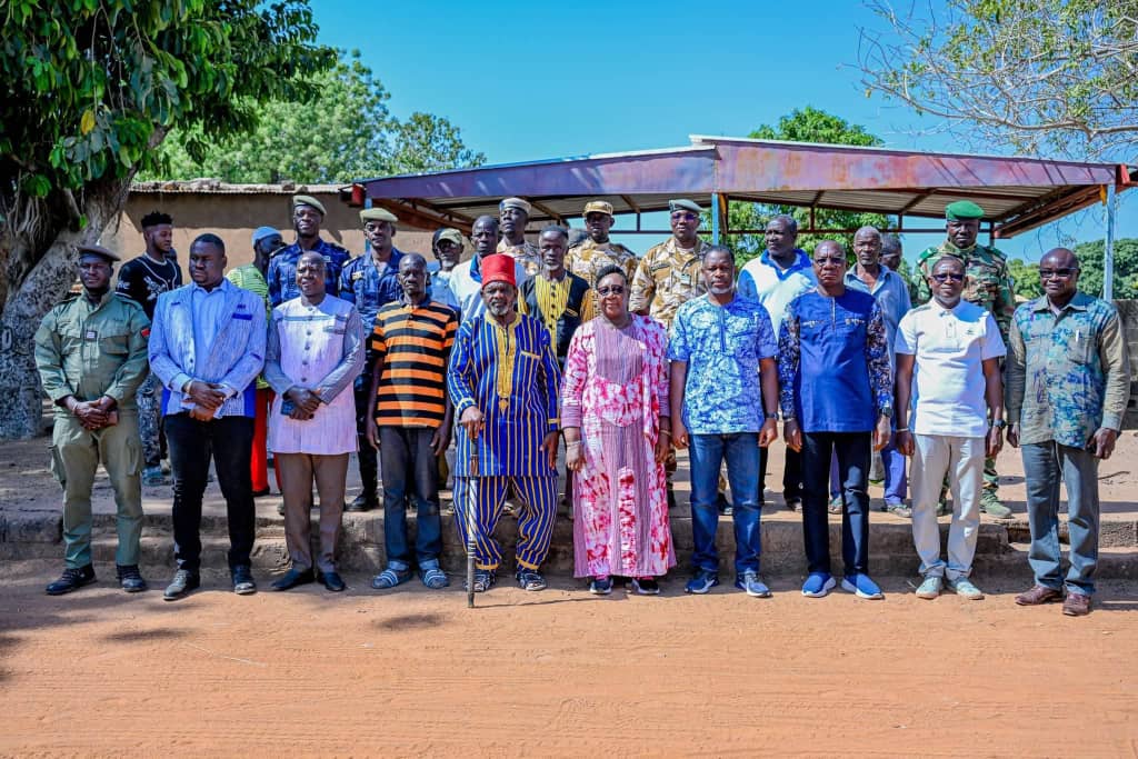 Il avait à ses côtés, le Ministre Délégué chargé de la Coopération régionale, Madame Bêbgnasgnan Stella Eldine KABRE/KABORE.La délégation gouvernementale a été accueillie par le Chef de détachement militaire, le Lieutenant Djibril NACANABO, allias Foroto, qui a présenté un point détaillé de la situation sécuritaire dans la province. Il a indiqué que les Forces combattantes, engagées dans des opérations conjointes ont permis la réinstallation progressive des populations déplacées. « Nous menons des actions offensives 24h/24 et nous ne céderons jamais un seul centimètre carré de notre territoire », a-t-il affirmé avec détermination.