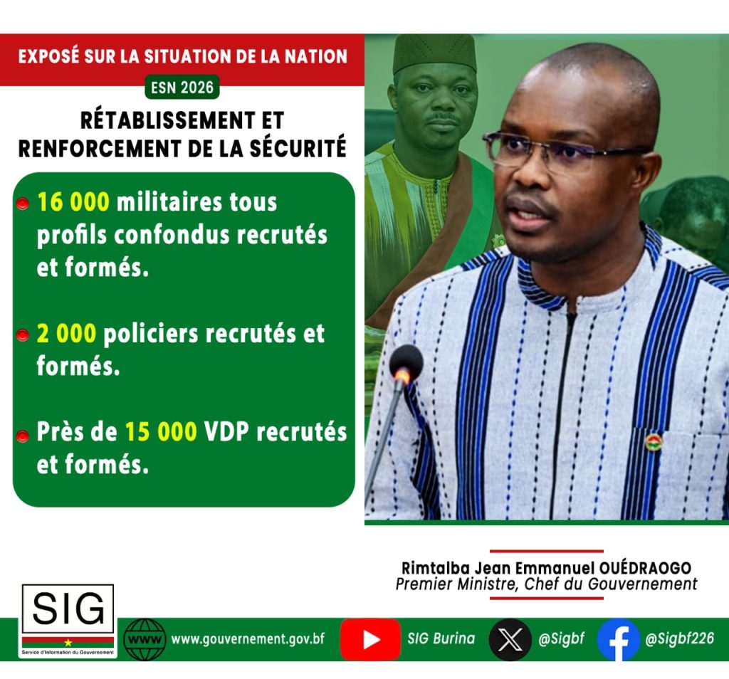 Rétablissement et renforcement de la sécurité : 16 000 militaires tous profils confondus recrutés et formés