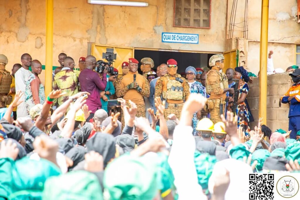 Le Président du Faso, le Capitaine Ibrahim TRAORÉ a encouragé les travailleurs et réaffirmé son engagement pour la promotion d’une industrie de transformation et de valorisation de nos ressources naturelles dans la perspective d’une souveraineté économique de notre pays.