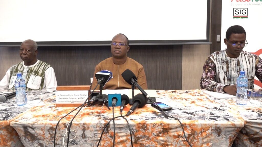 Le Secrétaire général du ministère de la Communication, de la culture, des arts et du tourisme, Bètamou Fidèle Aymar TAMINI a animé une conférence de presse le lundi 22 Septembre 2025, pour faire le point des préparatifs de la 15e édition du Salon international du tourisme et de l’hôtellerie de Ouagadougou (SITHO).