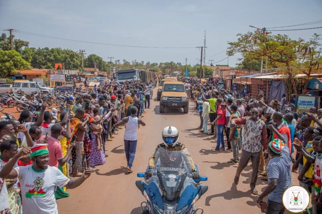 A Houndé, tout comme à Bobo-Dioulasso, le Capitaine Ibrahim TRAORE a eu droit à un bain de foule. Les citoyens, sortis nombreux, ont tenu à manifester leur soutien à la Transition.