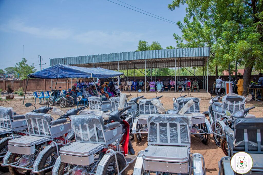 (Pô, 19 avril 2024). La gouverneure de la région du Centre-Sud, Massadalo Yvette NACOULMA/SANOU, au nom du Président de la Transition, Chef de l’Etat, le Capitaine Ibrahim TRAORE, a procédé ce vendredi, à la remise de dix motos à la Coordination provinciale des associations des personnes vivant avec un handicap de la province du Nahouri.