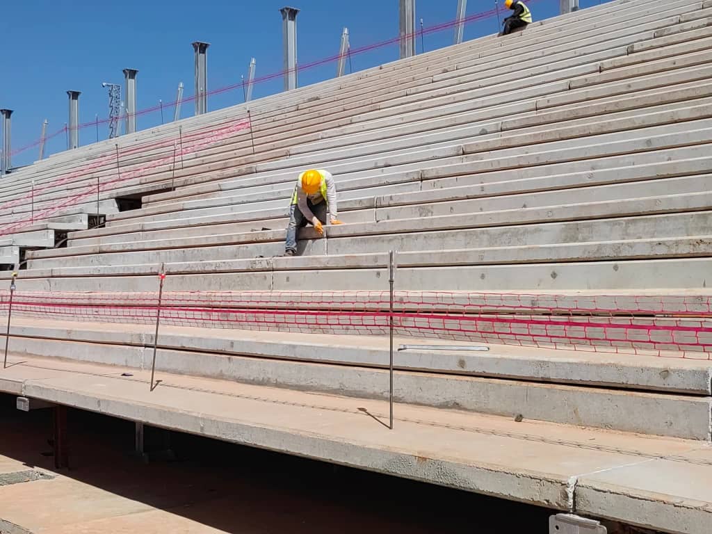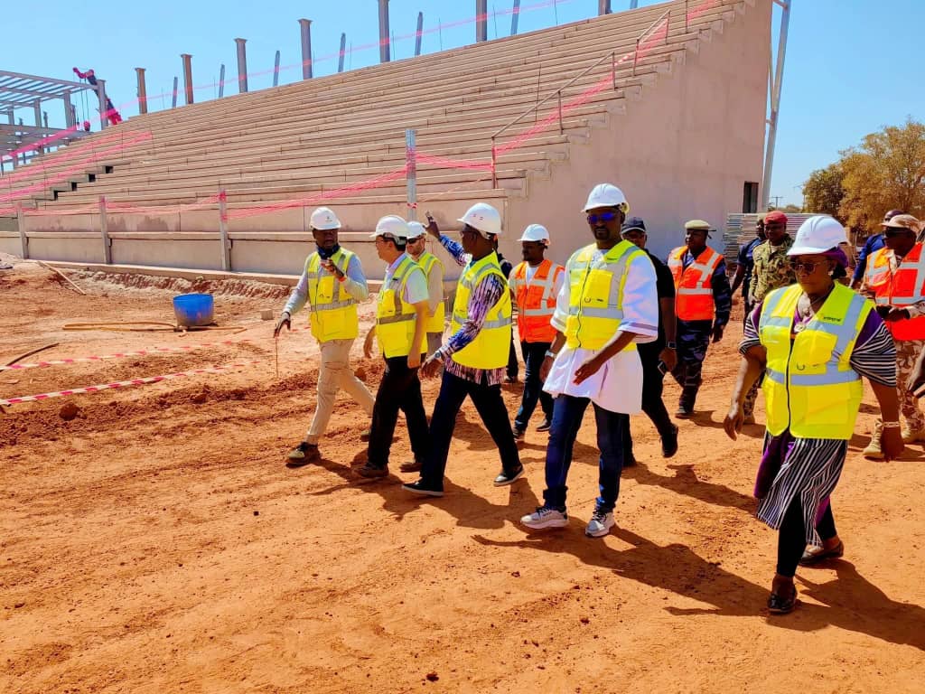En séjour à Bobo-Dioulasso, dans le cadre du soutien gouvernemental aux Forces de Défense et de Sécurité ((FDS), le Ministre des Sports, de la Jeunesse et de l’Emploi, Monsieur Roland SOMDA, a effectué ce 29 décembre 2025, une visite inopinée au stade de 15 000 places de Bobo-Dioulasso, situé à Leguema, afin d’apprécier l’état d’avancement des travaux. Il était accompagné du Ministre Secrétaire Général du Gouvernement, Monsieur Ousmane OUATTARA, et du Gouverneur de la Région du Guiriko Mariama KONATE/GNANOU.Sur le site, la délégation a constaté l’évolution des travaux au niveau de la tribune officielle, les bureaux, les gradins, les projecteurs de lumière, l’emprise du stade et l’ensemble des travaux en cours. À ce jour, les travaux réalisés par l’entreprise turque Integral Group, affiche un taux d’exécution de 72 %, et ce, conformément au calendrier établi. Le Ministre Roland SOMDA s’est dit satisfait de l’évolution du chantier, soulignant que les difficultés relevées lors de sa première visite ont été levées. Il a constaté que les travaux se déroulent dans les délais, avec une cuvette sportive désormais bien visible. Cette infrastructure viendra offrir un cadre adapté aux sportifs burkinabè, a t-il affirmé.De son côté, Selim KIZILASLAN, Directeur du projet de Integral Group, a indiqué que les gradins sont installés et que les prochaines étapes concernent la pose de la toiture et les finitions. Il a assuré que l’ouvrage sera livré avec un haut niveau de qualité, au bénéfice du sport burkinabè.