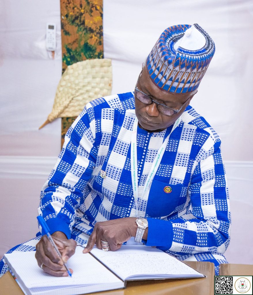 De l’espace audiovisuel pour le visionnage des photos et vidéos inédites du Capitaine Ibrahim TRAORÉ sur le terrain, il s’est rendu ensuite à l’espace réservé aux publications officielles de la Présidence du Faso, où il s’est procuré des exemplaires avant de signer le livre d’or.