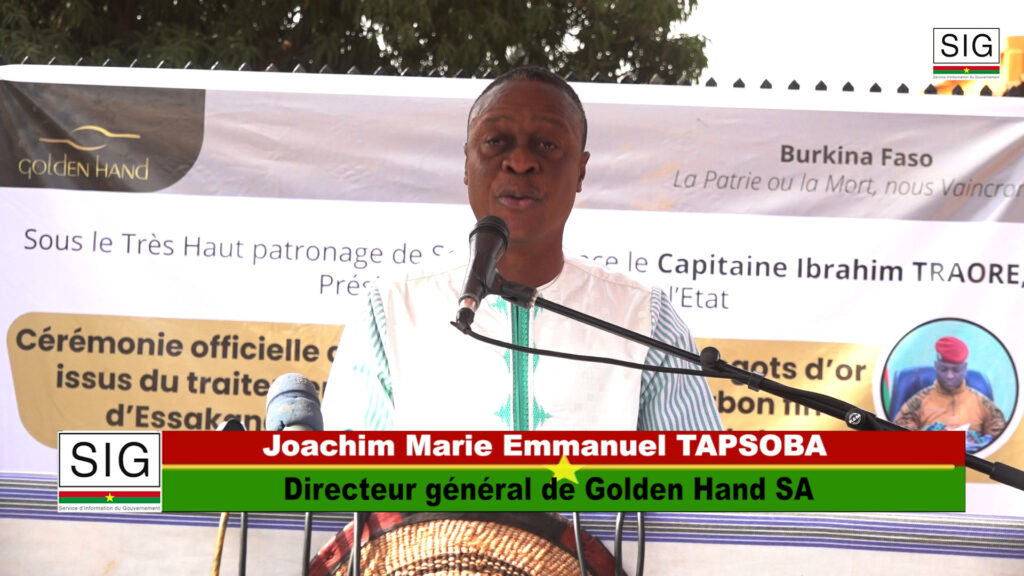 Pour le Directeur général de GOLDEN HAND SA, monsieur Emmanuel TAPSOBA, son personnel et lui- même sont très heureux de remettre au gouvernement à travers le ministère en charge des finances 93,197 kilogrammes d’or extrait de façon endogène.