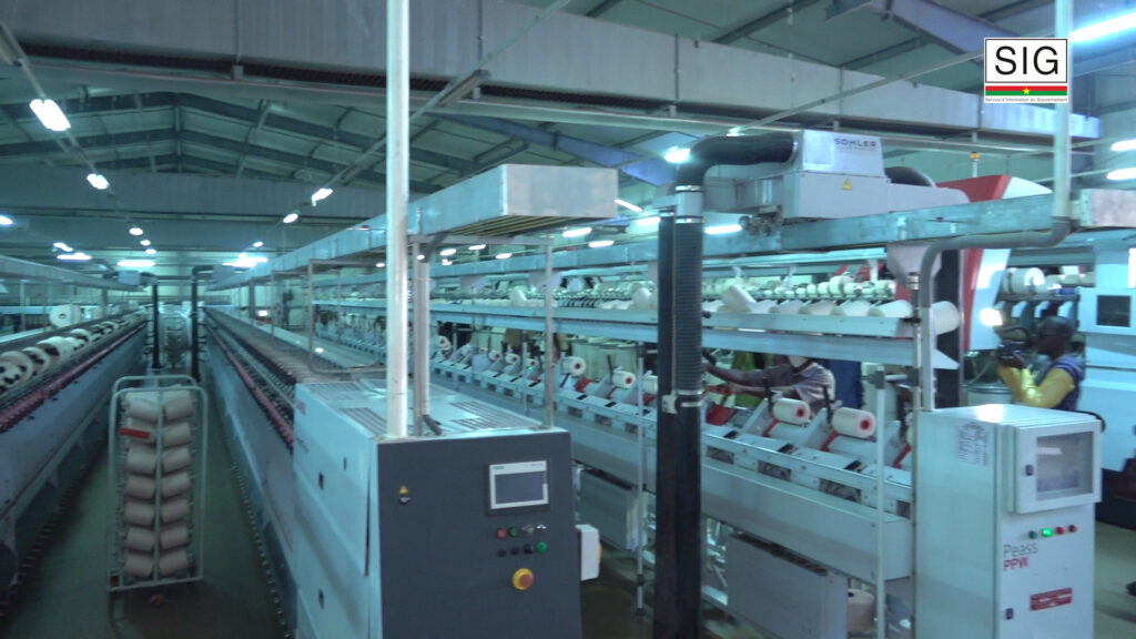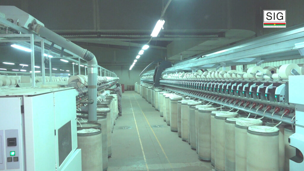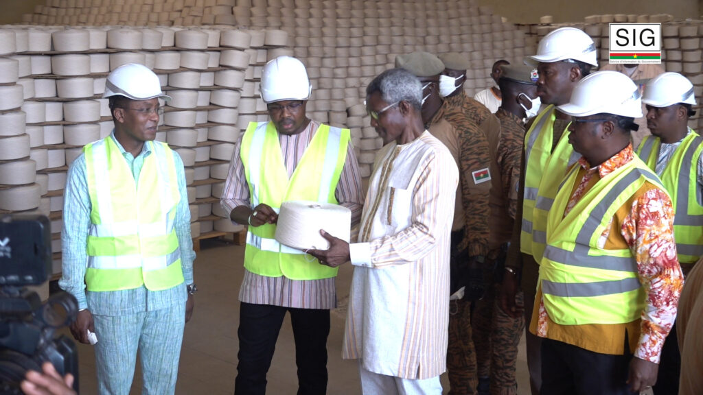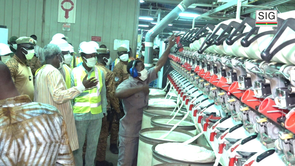 A la Filature du Faso, le Premier ministre et sa délégation ont pu toucher du doigt le savoir-faire de cette usine spécialisée dans la fabrication du fil de coton de qualité au Burkina Faso. L’ensemble des opérations qui permettent de passer des fibres de coton au fil à tisser est expliqué au Chef du gouvernement.