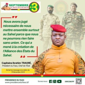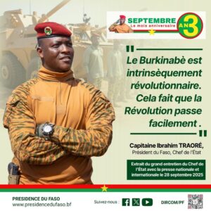 Actualités SEPTEMBRE, LE MOIS ANNIVERSAIRE : Une citation du Capitaine Ibrahim TRAORÉ 8 octobre 2025 Aucun commentaire