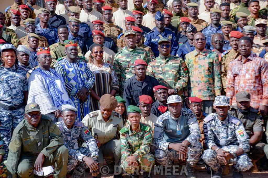 Une délégation gouvernementale composée du ministre de la Fonction publique, du Travail et de la Protection Sociale Mathias TRAORÉ et du ministre de l’Environnement, de l’Eau et de l’Assainissement Roger BARO était aux côtés des forces de défense et de sécurité de la Région du Nando ce mardi 30 décembre 2025. Accompagnée par les autorités régionales, coutumières et provinciales, la délégation conduite par le ministre chargé de la Fonction publique Mathias TRAORÉ est porteur d’un message du Président du Faso, Chef de l’État le Capitaine Ibrahim TRAORÉ aux forces combattantes engagées pour la reconquête du territoire. A ces hommes et femmes engagés en première ligne pour la réinstallation des villages, la réouverture des écoles et la reprise des activités quotidiennes des populations dans cette partie du Burkina Faso, le chef de la délégation a traduit les félicitations et les encouragements du Chef suprême des armées.